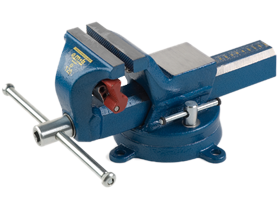 Gestampt stalen bankschroef met een kaakbreedte van 120 mm. Draaischijf die 360 graden kan draaien en geïntegreerde pijpklem zijn inbegrepen. De bankschroef kan ook gecombineerd worden met een kaakbeschermer.