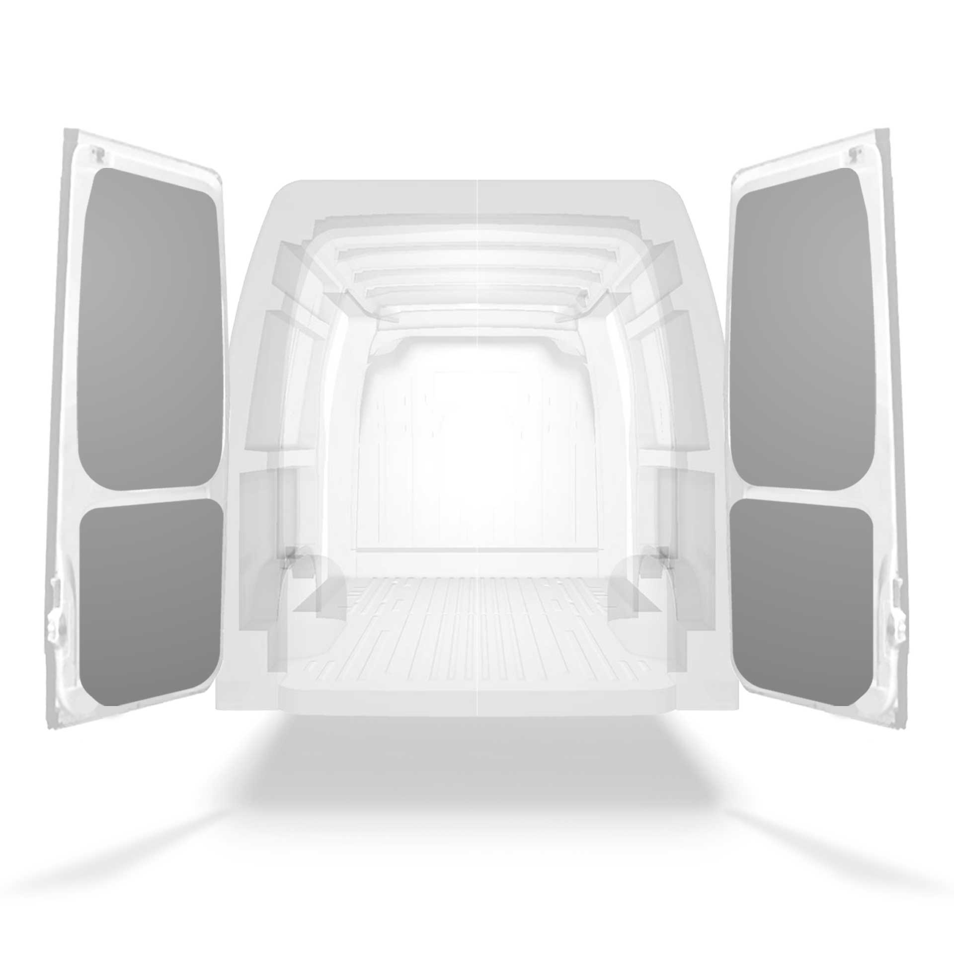 Deze voorgesneden achterportierbekleding voor bestelwagens is op maat ontworpen voor de gedeelten van de dubbele deuren van het voertuig.