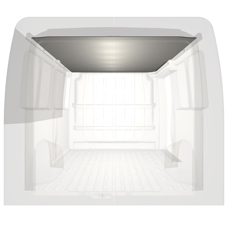 Lichtgewicht bekleding voor het dak van een Citroën Jumper / Peugeot Boxer / Fiat Ducato. De dakbekleding zorgt voor een lichte, professionele afwerking aan de binnenkant en een aangename werkomgeving.