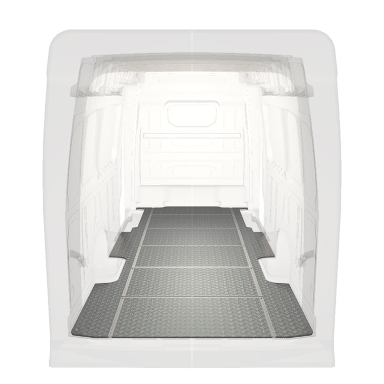 De vloer wordt zonder boren met zeer sterke lijm gemonteerd. Dit geeft een sterkere installatie dan moeren en bouten, terwijl de restwaarde van het voertuig behouden blijft.