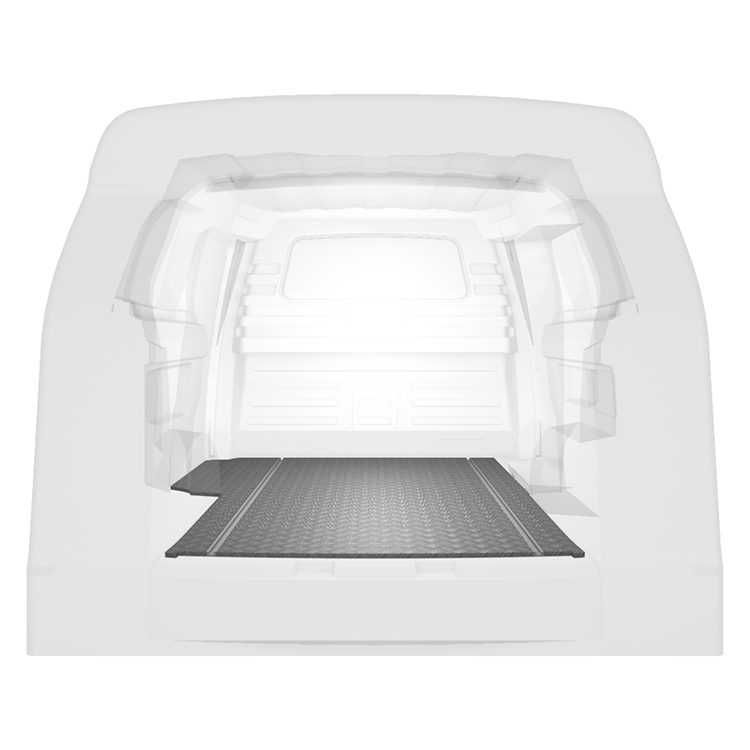 Lichtgewicht, robuuste extra lange vloer voor een Volkswagen ID. Buzz Cargo 22- met antislip-instaplijst van aluminium en cargorails (in de lengte) voor een snelle en veilige installatie van inrichtingssystemen en andere accessoires.